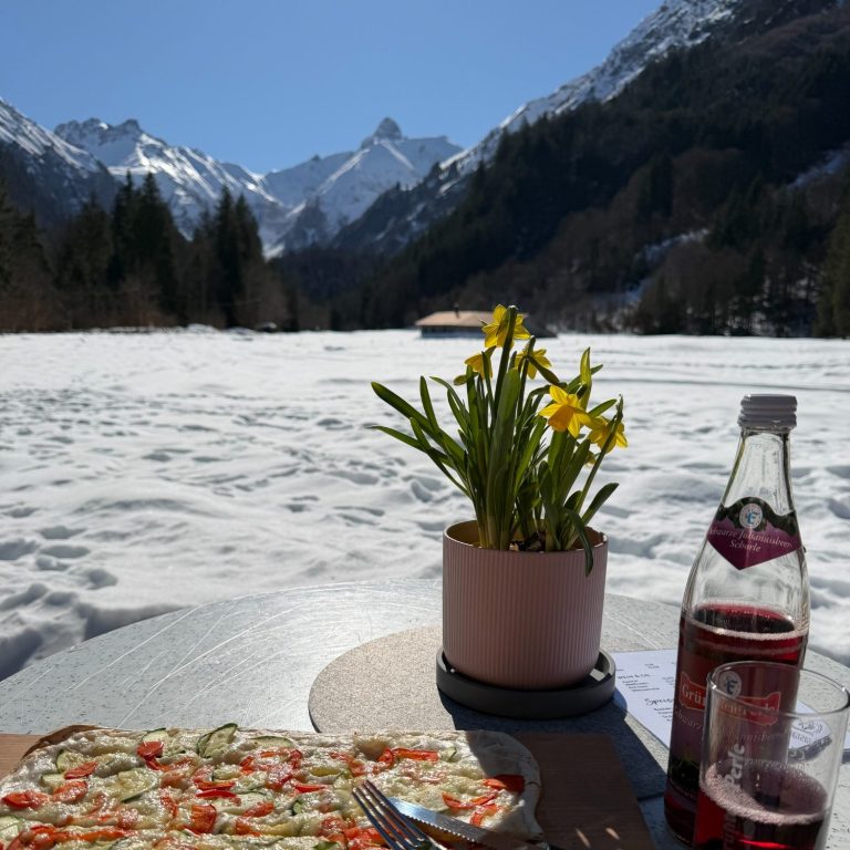 Umgeben von saftigen Wiesen, klarer Bergluft und der Ruhe der Natur genießt ihr von unserer Sonnenterrasse den direkten Blick auf die imposante Trettachspitze, dem „Matterhorn des Allgäus“. Eine Kulisse, die Ruhe schenkt und den Moment besonders macht.
