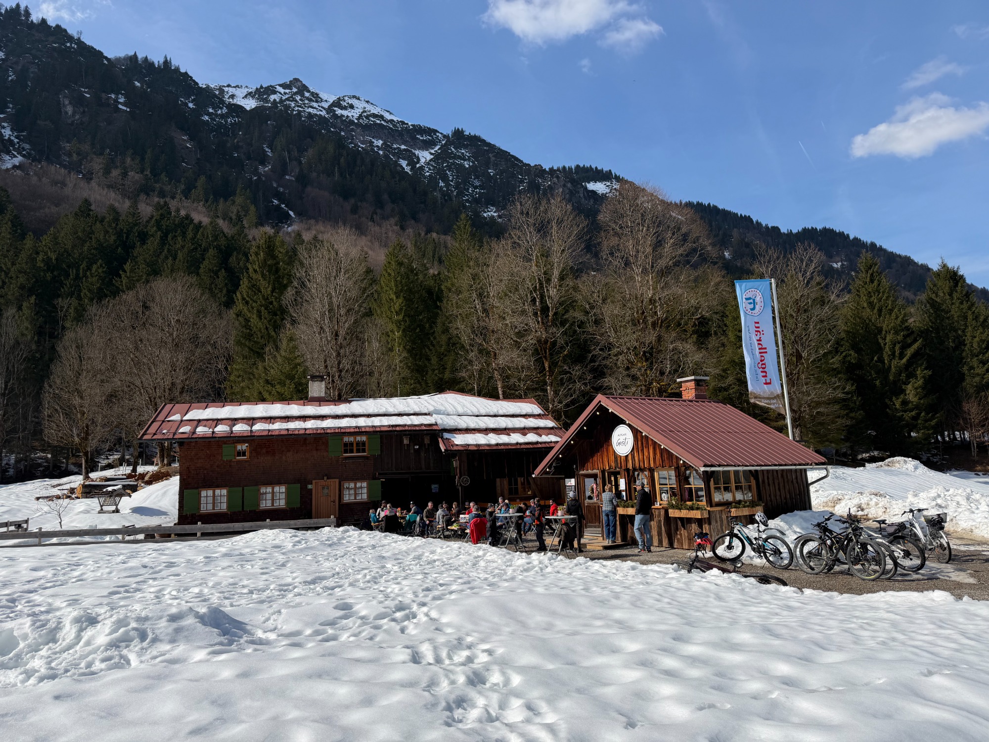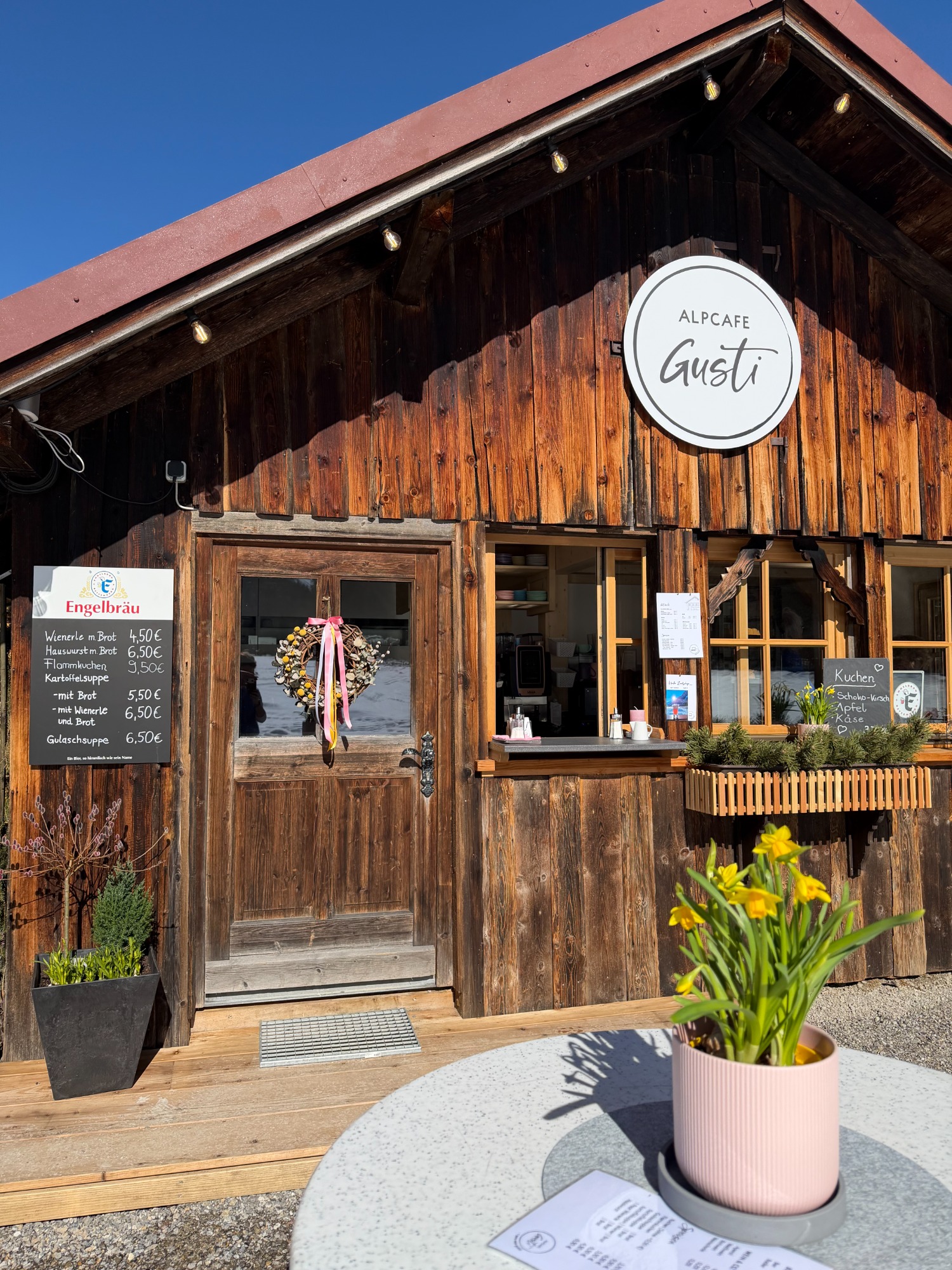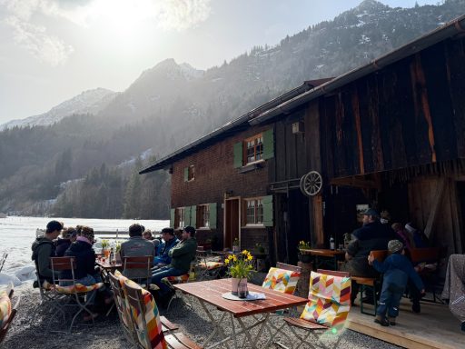 eröffnetes Alpcafe Gusti - ein kleiner, gemütlicher Ort zum Entspannen und Genießen. Unsere Sonnenterrasse mit einzigartigem Bergblick lädt bei schönem Wetter zum Verweilen ein. Und wenn das Wetter einmal umschlägt, bietet unsere urige Altholzstube einen warmen, geschützten Platz. Im Alpcafe Gusti erwarten euch feiner Kaffee, hausgemachte Kuchen, warme Kleinigkeiten und herzliche Gastfreundschaft.