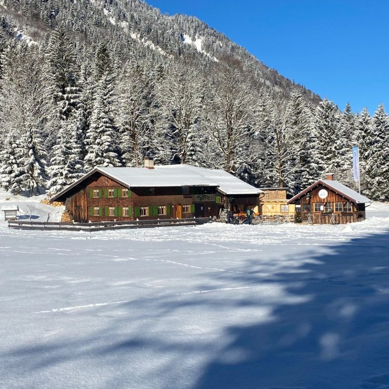 Unser Alpcafe Gusti liegt südlich von Oberstdorf im malerischen, Trettachtal, zwischen dem glasklaren Christlessee und dem Weiler Spielmannsau.